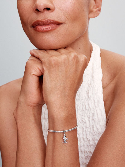Silver open bangle with silicone stoppers and interchangeable end caps