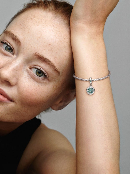 Lucky Four Leaf Clover Dangle Charm Sterling silver