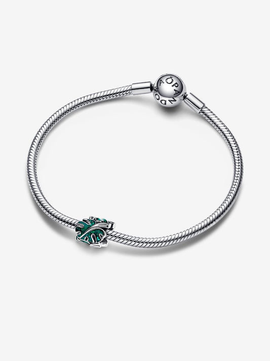 Disney Snow White apple silver charm with red enamel and dark green cubic zirconia