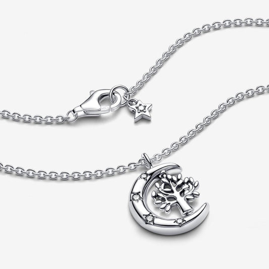 Moon & Spinning Tree Pendant Necklace