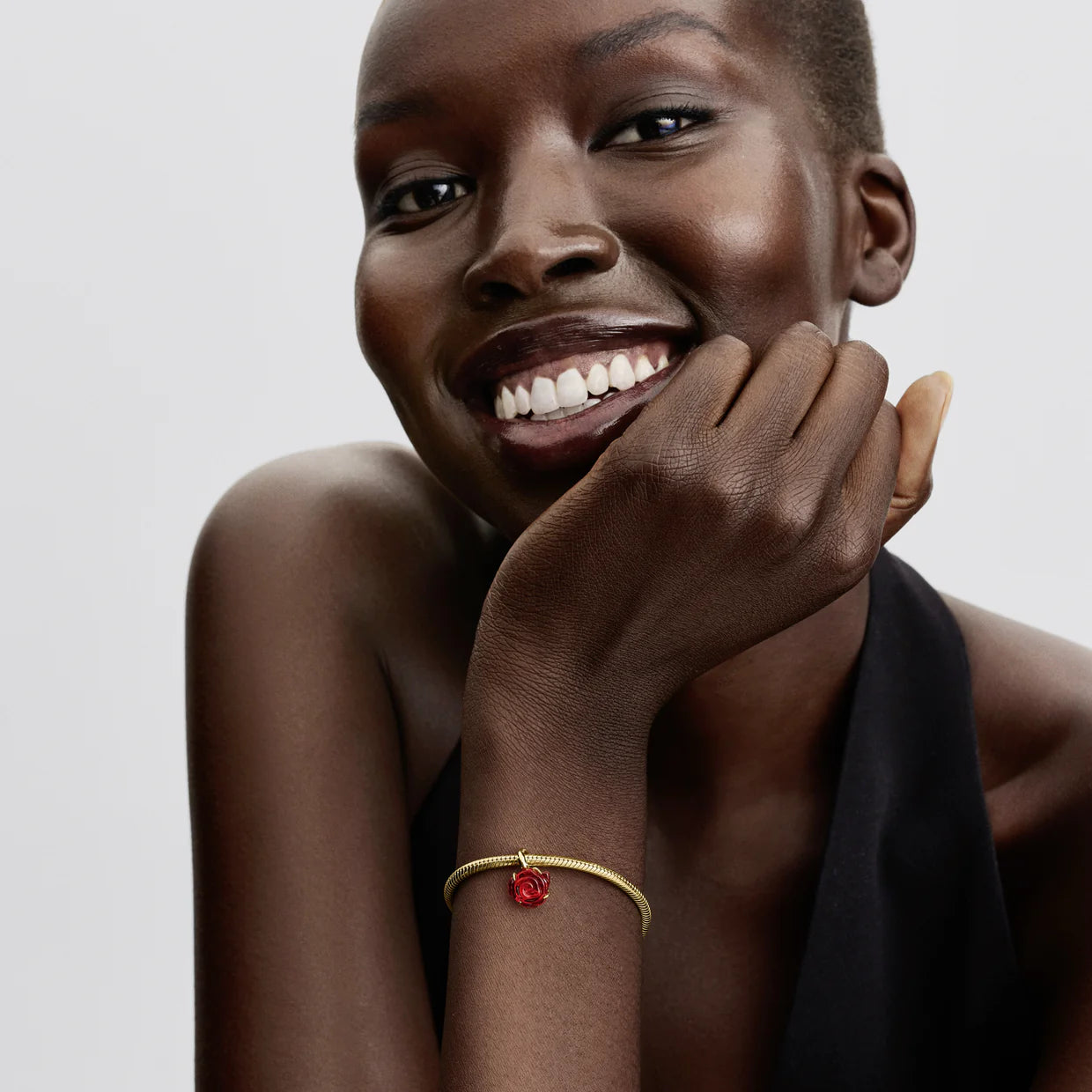 Inspired by Disney’s Beauty and the Beast, this 14k gold-plated charm features a red Murano glass rose with a thorny stem bail. A symbol of true beauty, love and kindness that breaks all curses.