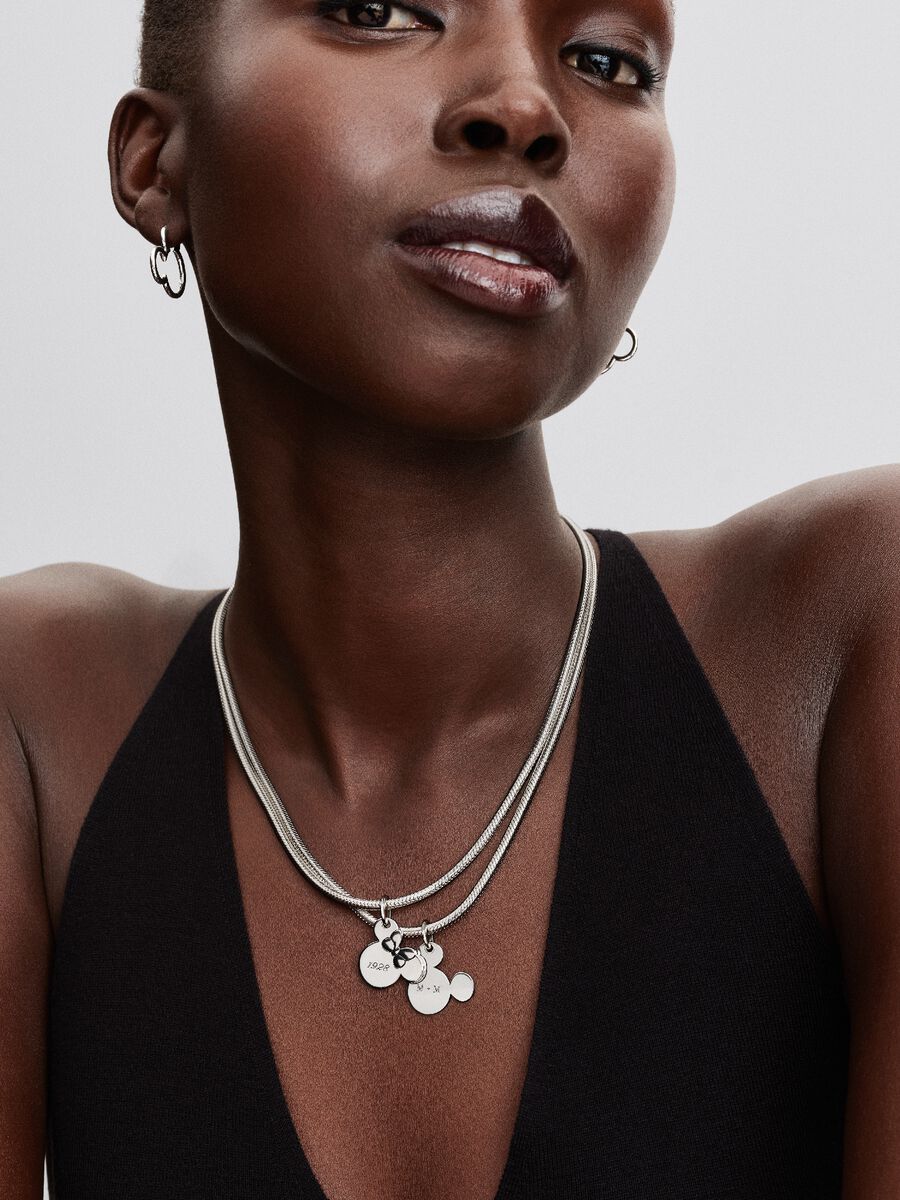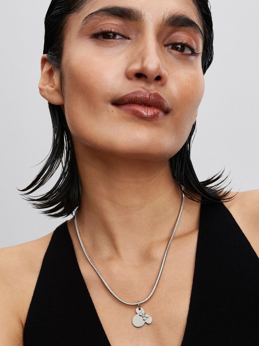 Introducing the first-ever engravable Disney x Pandora pendant, featuring Minnie Mouse's iconic silhouette in sterling silver.