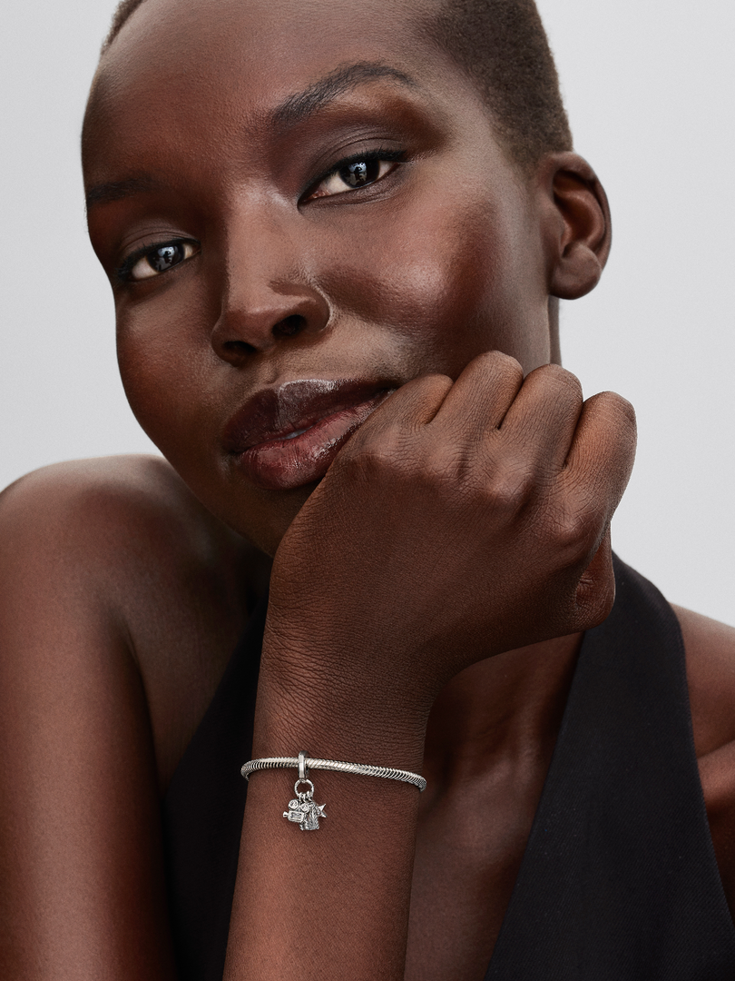 Lights, camera, action! Shine bright with our Hollywood-inspired dangle charm in sterling silver, featuring a clapperboard, film camera and a sparkling cubic zirconia star motif — engraved with 'Hollywood'.