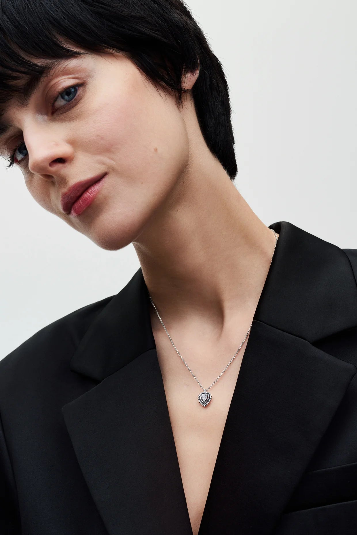 Sparkling Heart Halo Pendant Necklace Sterling silver