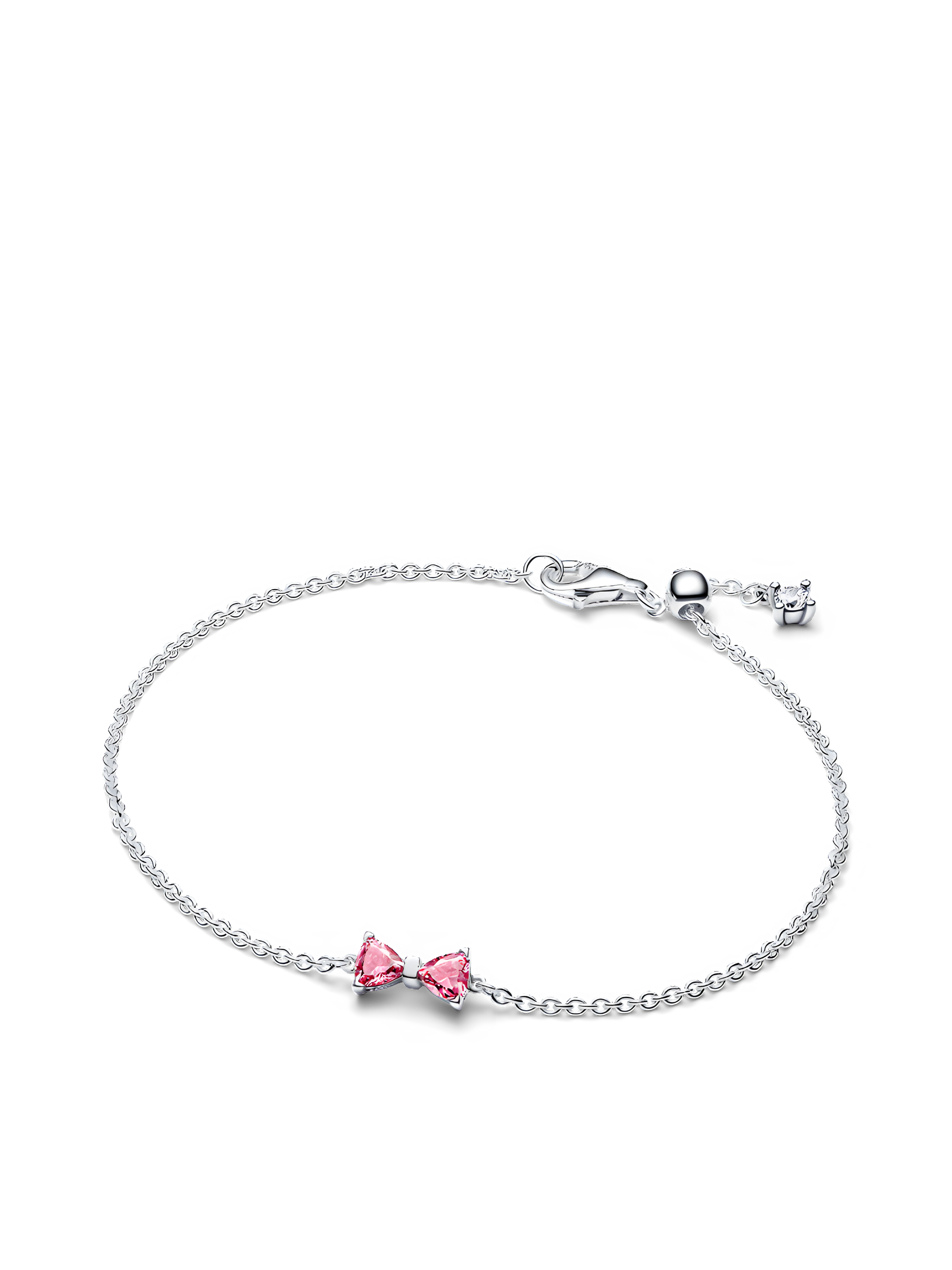 Tie your look together with a bow. Or several. This set includes a matching bracelet, ring, and necklace – each crafted from sterling silver and detailed with a sparkling pink bow silver and detailed with a sparkling pink bow.