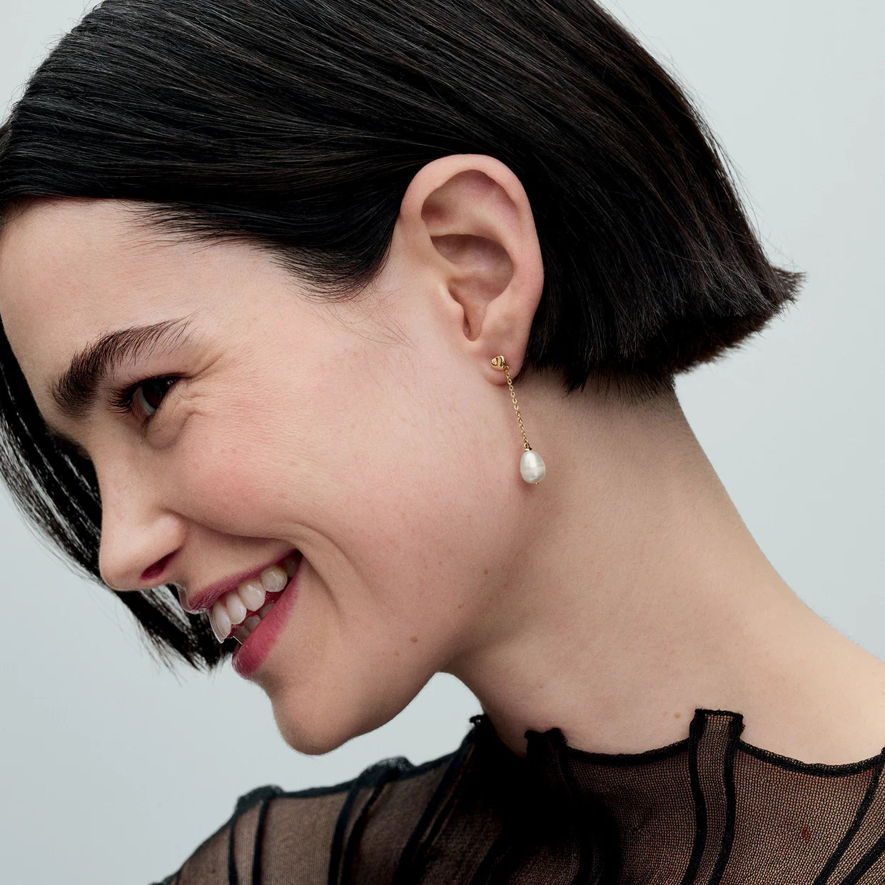 Add a classy touch to your outfit with these Treated Freshwater Cultured Pearl & Stone Drop Earrings. Plated with 14k gold, the top part features a cubic zirconia stone, while a treated freshwater cultured pearl dangles below, connected by jump rings for subtle movement. Secured with heart-shaped butterfly backs, these pearl drop earrings are a classic addition to the Pandora Timeless collection, blending materials and dimensions seamlessly. Please note each treated freshwater cultured pearl is unique and can vary in size and color; normal wear and tear may occur with this material. Our freshwater cultured pearls are treated with bleaching and lustre enhancement.